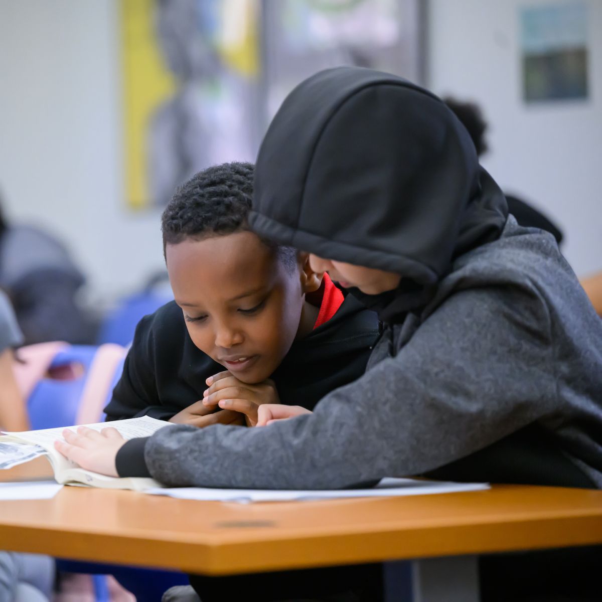 Photo of two students reading a book togetherOur small school and highly personalized approach provides each student with an individualized program that fosters academic excellence and supports social and emotional growth. Students are celebrated as integral, invaluable members of our diverse community. They quickly build strong relationships with each other and are well-known by their advisors, teachers, and other CCSC adults.